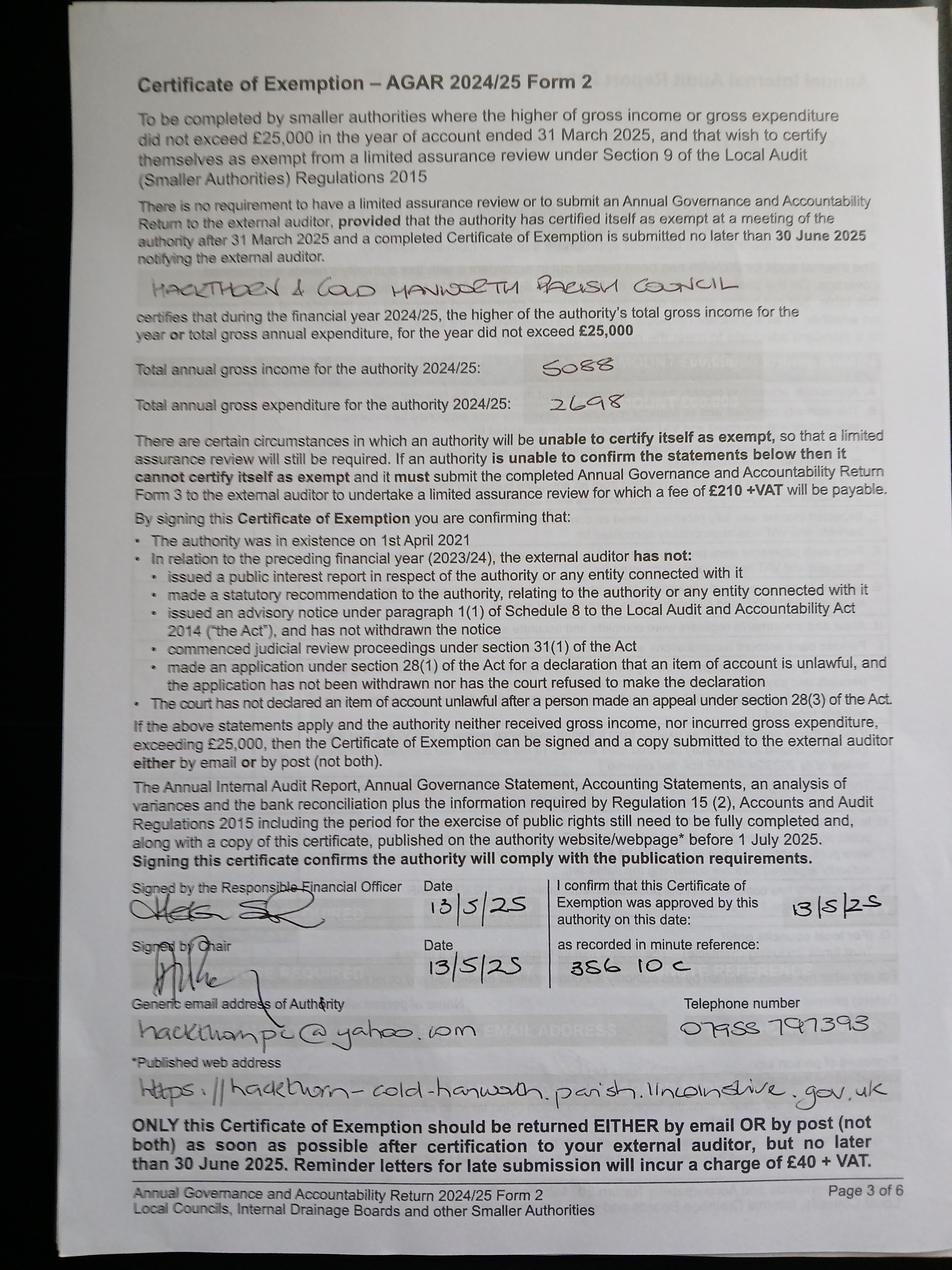 2024-25 AGAR Certificate of Exemption