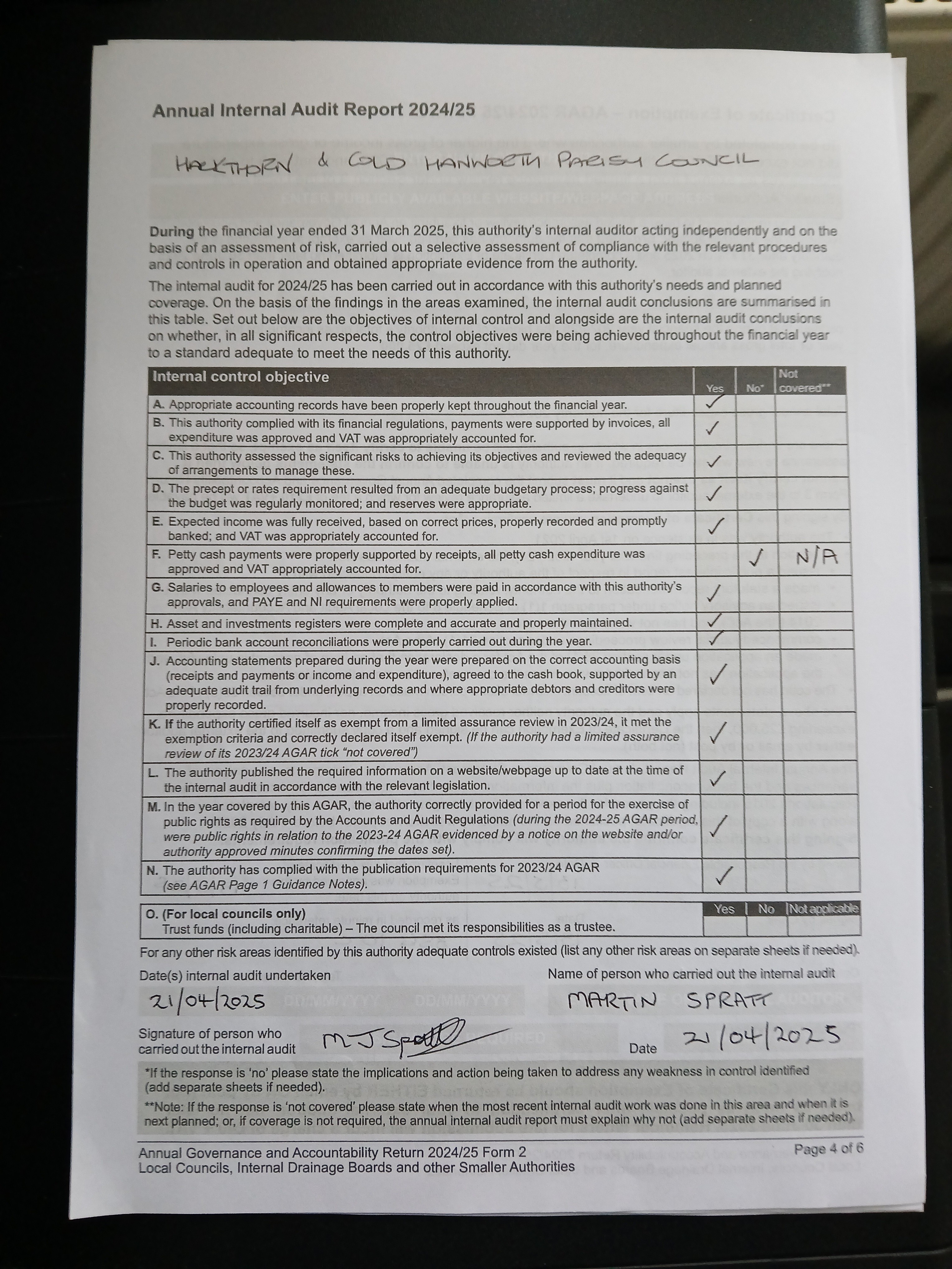 2024-25 AGAR Annual Internal Audit Report